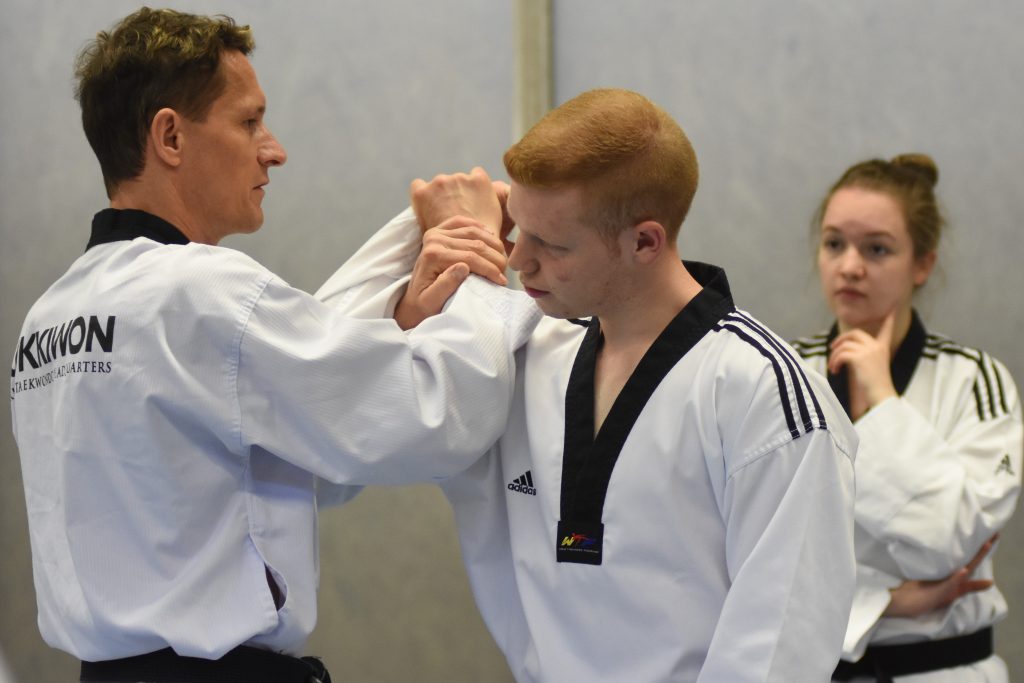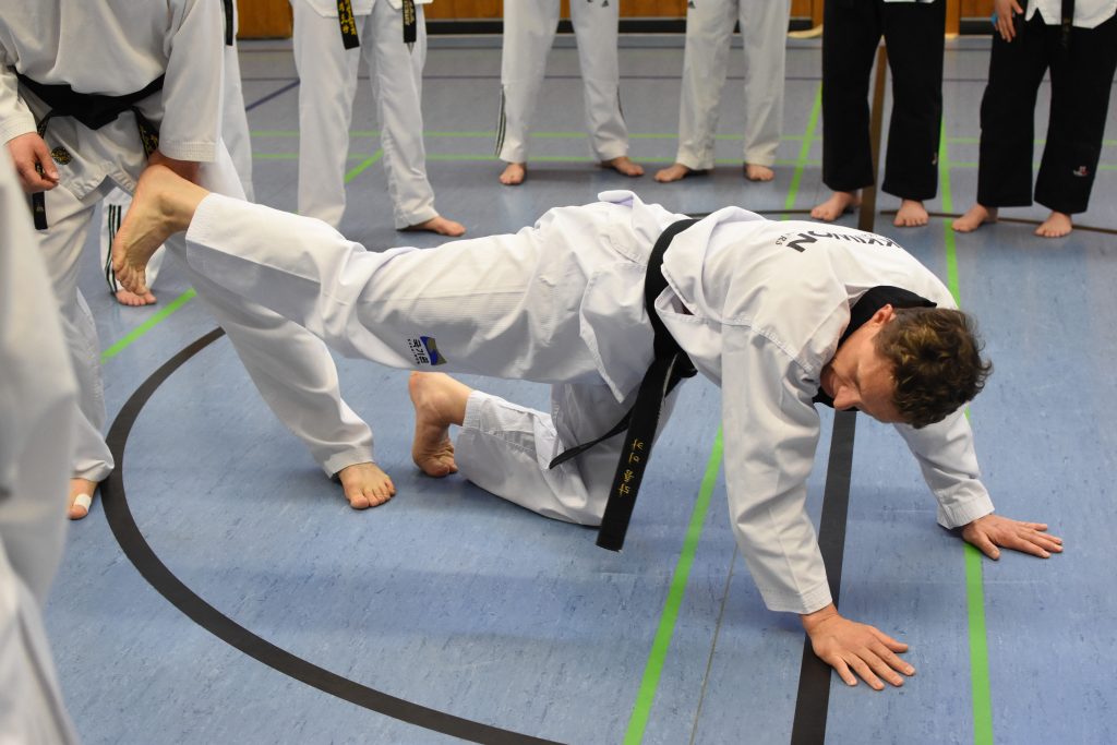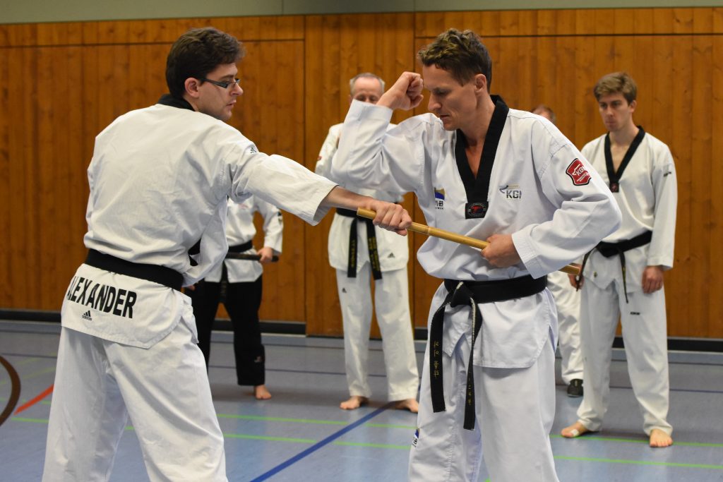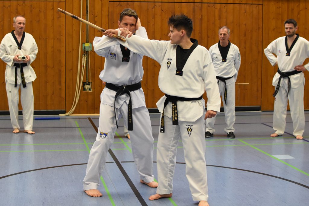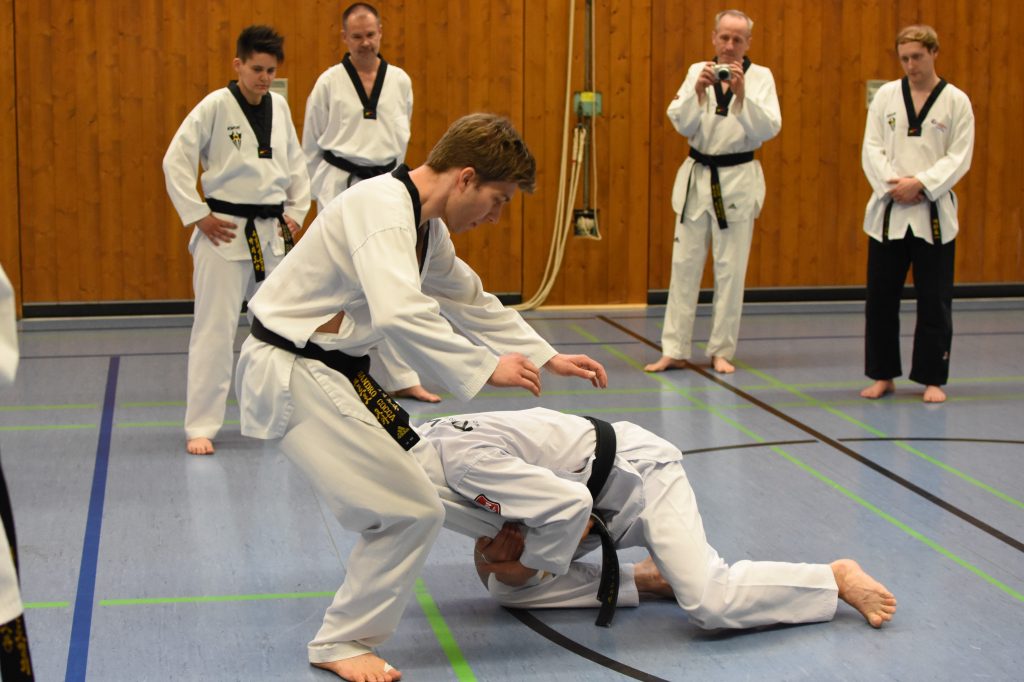 Während des gesamten Lehrgangs profitierten die Teilnehmenden enorm von Kai Müllers jahrzehntelanger Erfahrungen als aktiver Kampfsportler und als Trainer. Neben dem 8. Dan im Taekwondo hat er den 4. Dan im Ju Jutsu und den 2. Dan im Karate. Diese Bandbreite ist genau das, was für Taekwondo-Sportler den Blick über den Tellerrand ermöglicht und blinde Flecken im eigenen Training aufdeckt. Denn Selbstverteidigung ist und bleibt ein wichtiger Bestandteil eines jeden Kampfsports, ja sie ist dessen Ursprung – auch wenn wir das im Taekwondo manchmal zu vergessen scheinen.