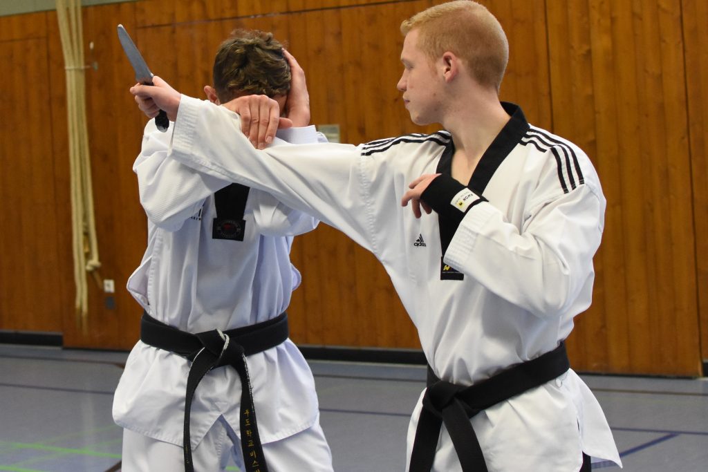 Die Disziplin Selbstverteidigung wird im modernen Taekwondo oft stiefmütterlich behandelt: Viele Sportler üben die Abwehr realer Angriffe nur für Prüfungen. Das Taekwondo-Aktuell-Seminar mit Kai Müller kam da genau richtig: Es machte allen Teilnehmenden klar, wie wichtig regelmäßiges Training gerade bei der Selbstverteidigung ist – den nur hier kann eine einzige Aktion im schlimmsten Fall über Leben und Tod entscheiden.