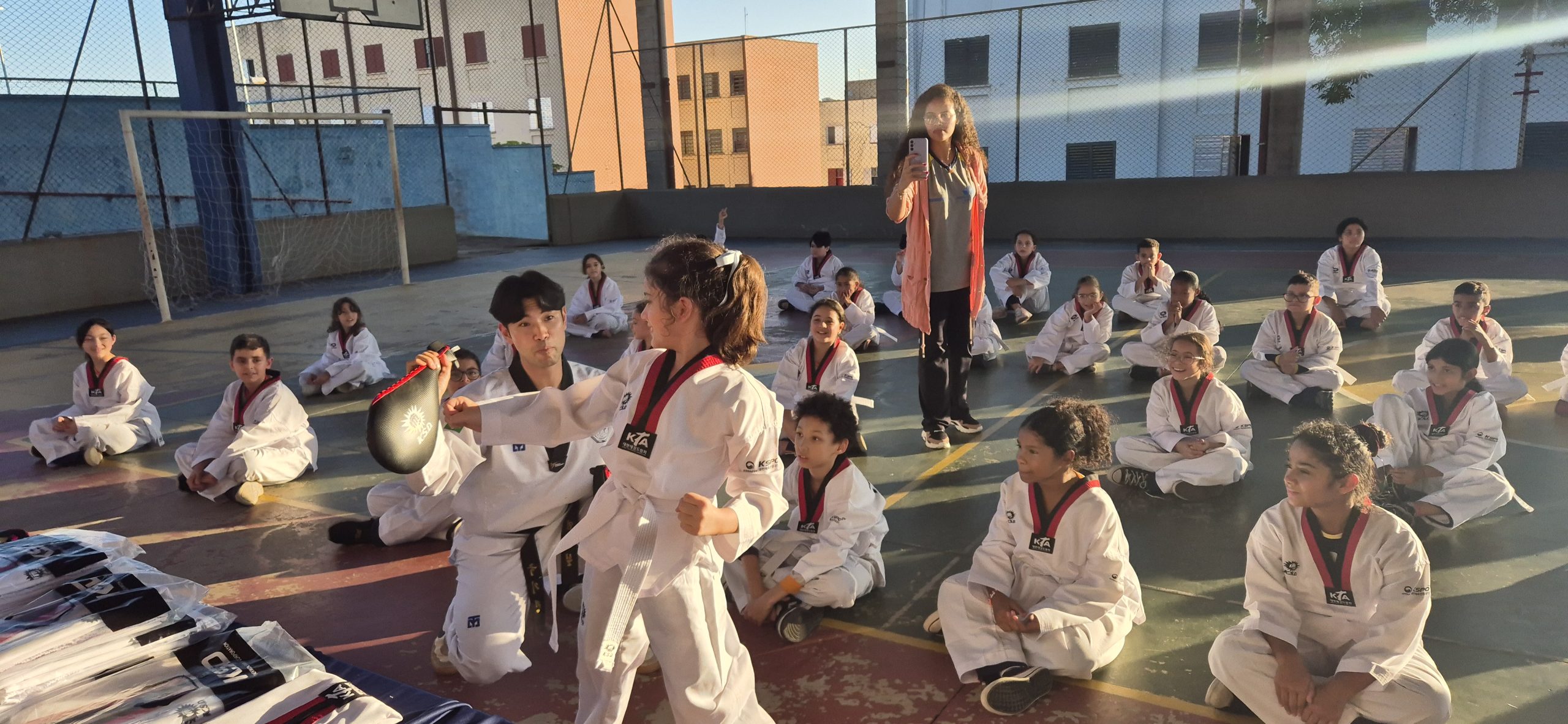 Master Lim: Honestly, I am not fluent in Portuguese yet. It is a big challenge. But I try my best to improve every day — by speaking a lot with my Taekwondo students and reading newspapers.